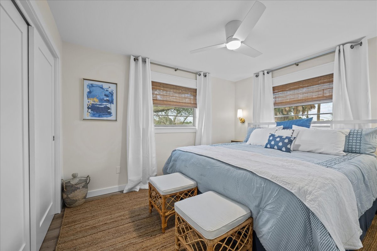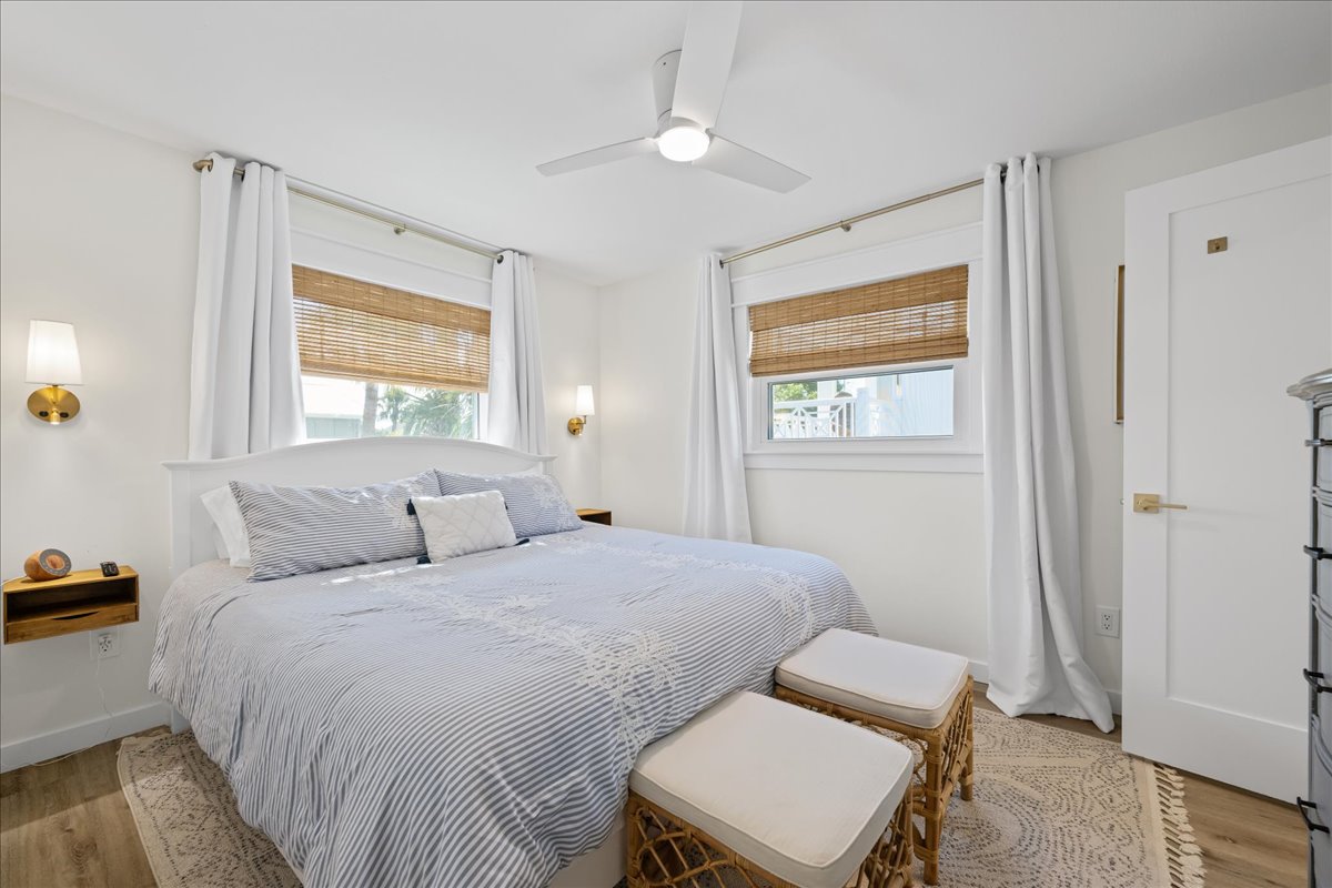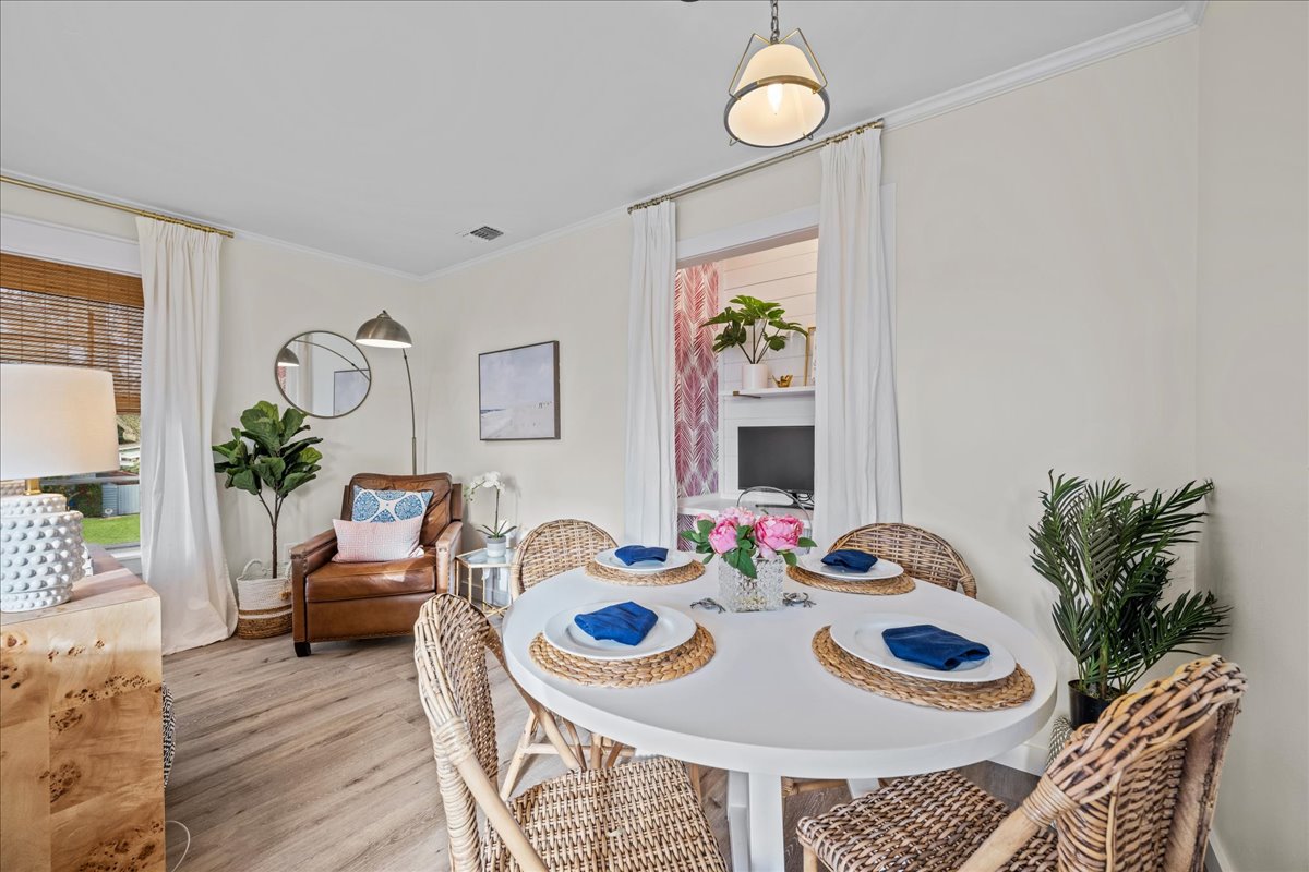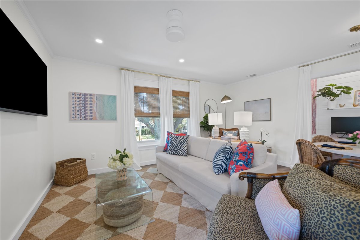 Experience coastal comfort at this stylish, dog-friendly retreat in Jacksonville Beach. This bright and spacious two-bedroom, two-bath home features modern beach-chic décor, two dedicated workspaces with high-speed WiFi, and a fully stocked kitchen for at-home meals. Step out back to a fenced tropical yard with a string-lit pergola and shared outdoor shower — perfect after a beach day. Just four blocks from the sand and minutes to local breweries, restaurants, and the Mayo Clinic, it’s ideal for remote professionals, families, and anyone who wants work and play by the shore.